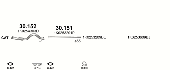 Приемная труба Фольксваген Гольф V (Volkswagen Golf V) 1.4 05-08 (30.152) Polmostrow