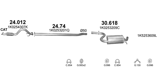 Труба приемная Фольксваген Гольф, Джетта, Пассат, Скирокко (Volswagen Golf, Jetta, Passat, Scirocco)/Ауди А3 (Audi A3)/Сиат Алтея, Леон (Seat Altea,Leon)/Шкода Супер Б, Октавия (Skoda Super B, Octavia) 1.4, 1.5, 07-13 (24.012) Polmostrow