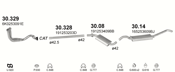 Резонатор Сеат Толедо (Seat Toledo) 91-91 / Фольксваген Гольф II (Volkswagen Golf II) 85-92 / Фольксваген Джетта (Volkswagen Jetta) 85-92 1.1-1.6 (30.08) Polmostrow