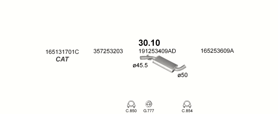 Резонатор Фольксваген Гольф II (Volkswagen Golf II) 1.8 / 1.8i / GTI kat. 87-91 / Фольксваген Джетта (Volkswagen Jetta) 87-91 (30.10) Polmostrow