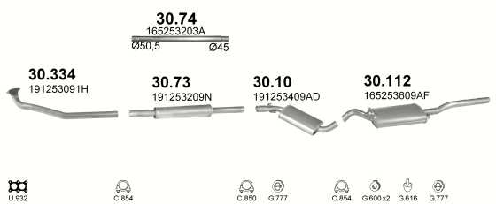 Резонатор Фольксваген Гольф II (Volkswagen Golf II) 1.8 / 1.8i / GTI kat. 87-91 / Фольксваген Джетта (Volkswagen Jetta) 87-91 (30.10) Polmostrow
