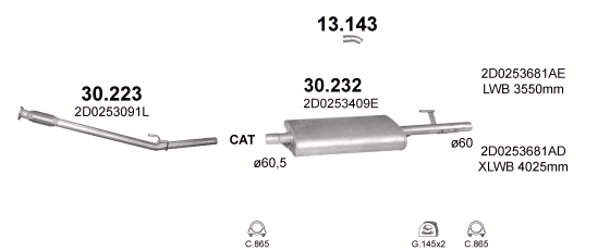 Глушитель Фольксваген ЛТ (Volkswagen LT) 96- 2.5SDi/2.5TDi/2.8TDi Мерседес Спринтер (Mercedes Sprinter) 2.9 TD (30.232) Polmostrow