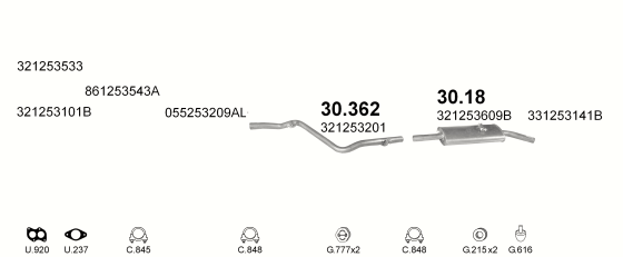 Глушитель Фольксваген Пассат, Сантана (Volkswagen Passat , Santana) 1.3/1.6 80-88 (30.18) Polmostrow