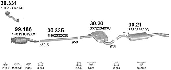 Труба средняя Фольксваген Гольф (Volkswagen Golf)/(Volkswagen Jetta)/(Volkswagen Passat)/(Volkswagen Vento) 91-98 (30.335) Polmostrow