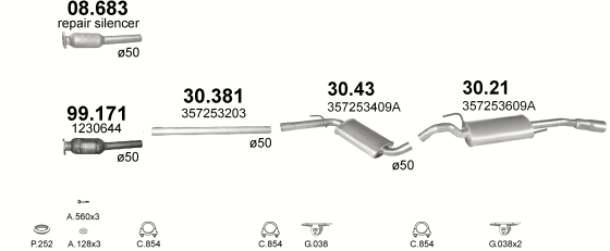 Глушитель Фольксваген Пассат (Volkswagen Passat) 1.6TD/1.9TD; 1.8; 2.0 kat 88-93 (30.21) Polmostrow