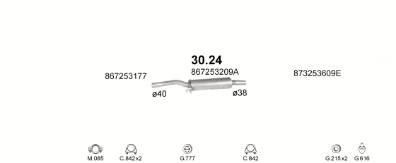 Резонатор Фольксваген Дерби, Поло (Volkswagen Derby , Polo) 1.3 84-94 (30.24) Polmostrow