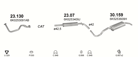Труба приемная Сеат Кордоба (Seat Cordoba)/(Seat Ibiza)/(Seat Inca)/(Volkswagen Caddy II)/(Volkswagen Polo) 1.4i 12/95 -0 (23.130) Polmostrow