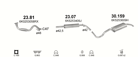 Резонатор Сеат Кордоба, Ибица (Seat Cordoba , Ibiza) / Фольксваген Поло (Volkswagen Polo) 1.0i; 1.3i; 1.4i;1.6i; 1.9D 93-02 (23.07) Polmostrow