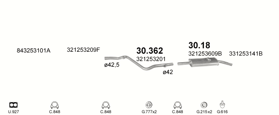 Глушитель Фольксваген Пассат, Сантана (Volkswagen Passat , Santana) 1.3/1.6 80-88 (30.18) Polmostrow