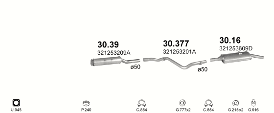Резонатор Фольксваген Пассат, Сантана (Volkswagen Passat , Santana) 1.6TD 80-88 (30.39) Polmostrow