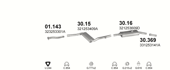 Глушитель Фольксваген Пассат, Сантана (Volkswagen Passat , Santana) 1.8 kat. 80-88 (30.16) Polmostrow