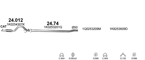 Труба приемная Фольксваген Гольф, Джетта, Пассат, Скирокко (Volswagen Golf, Jetta, Passat, Scirocco)/Ауди А3 (Audi A3)/Сиат Алтея, Леон (Seat Altea,Leon)/Шкода Супер Б, Октавия (Skoda Super B, Octavia) 1.4, 1.5, 07-13 (24.012) Polmostrow
