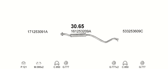 Резонатор Фольксваген Гольф I (Volkswagen Golf I) 1.6 GTI 77-84 / Фольксваген Джетта (Volkswagen Jetta) 81-84 / Фольксваген Сирокко (Volkswagen Scirocco) 77-83 (30.65) Polmostrow