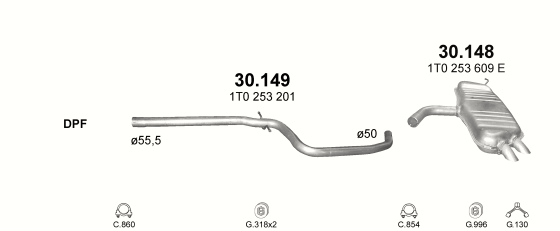 Глушитель Фольксваген Туран (Volkswagen Touran) 9 TDi TD 05/04- (30.148) Polmostrow