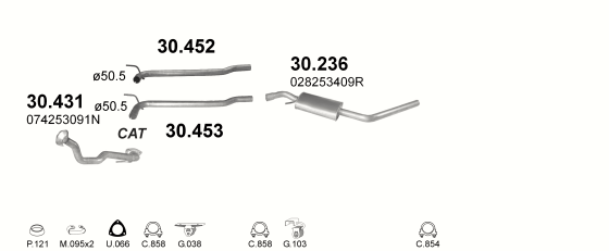 Ремонтная труба глушителя Фольксваген Транспортер IV (Volkswagen Transporter IV) 2.5TD 01/96-07/03 kr. (30.450) Polmostrow