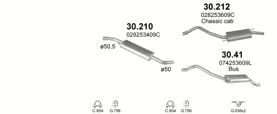 Глушитель Фольксваген Транспортер IV (Volkswagen Transporter IV) 90-96 (30.212) Polmostrow