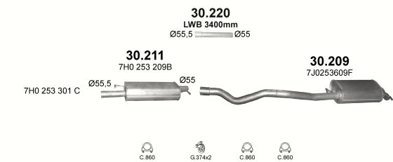 Глушитель Фольксваген Транспортер V (Volkswagen Transporter V) 1.9 TDi 04/03-11/09 (30.217) Polmostrow