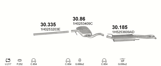 Труба средняя Фольксваген Гольф (Volkswagen Golf)/(Volkswagen Jetta)/(Volkswagen Passat)/(Volkswagen Vento) 91-98 (30.335) Polmostrow