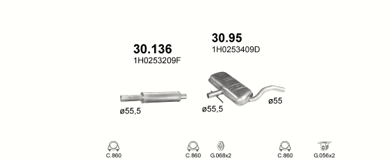 Резонатор Фольксваген Пассат (Volkswagen Passat) 2.0i -16V sedan variant 94-96 / Фольксваген Венто (Volkswagen Vento) 2.8VR6 07/95 -04/98 (30.136) Polmostrow