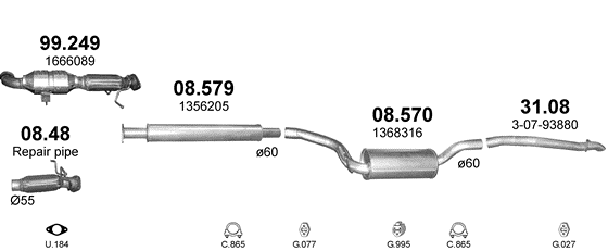 Глушитель Вольво В50 (Volvo V50) (08.570) 2.0 D 03-10 Polmostrow