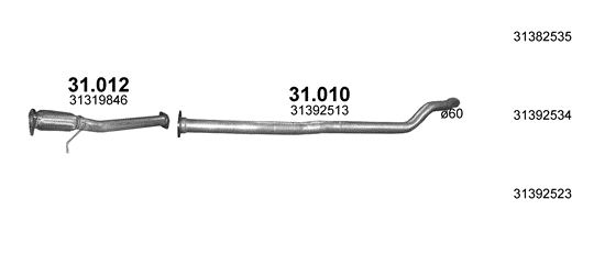 Труба приемная Вольво С60/С80/С90/В40/В60/В70/В90/ХС60 (Volvo S60/S80/S90/V40/V60/V70/V90/XC60) (31.012) Polmostrow